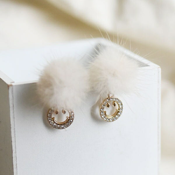スマイル チャーム 靴 ポンポン ボンボン ファー キーホルダー かわいい スマイリー