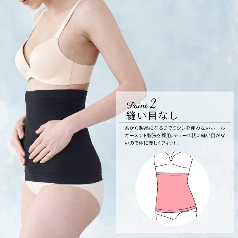 リング状の網目は両わき腹に当たる様に着用しますが、前面に回すと前腹部に抑え込みにも◎ 着用時には総丈30cmをキープできるハイウエスト仕様も嬉しいですね。